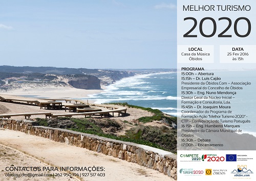 Realizou-se ontem, 25 de Fevereiro, uma Sessão de Informação sobre o Programa de Formação-Acção Melhor Turismo 2020, em Óbidos, nas instalações da Casa da Música, organizada pela Associação Empresarial Óbidos.com em articulação com o Organismo Intermédio da CTP.